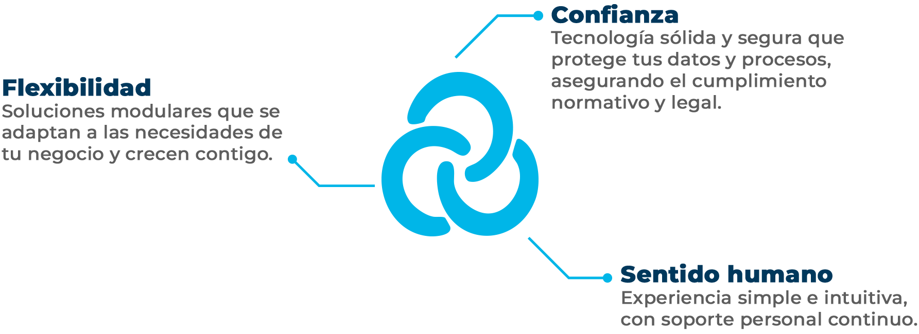 Tecnología sólida y segura que protege tus datos y procesos, asegurando el cumplimiento normativo y legal.Sentido humano